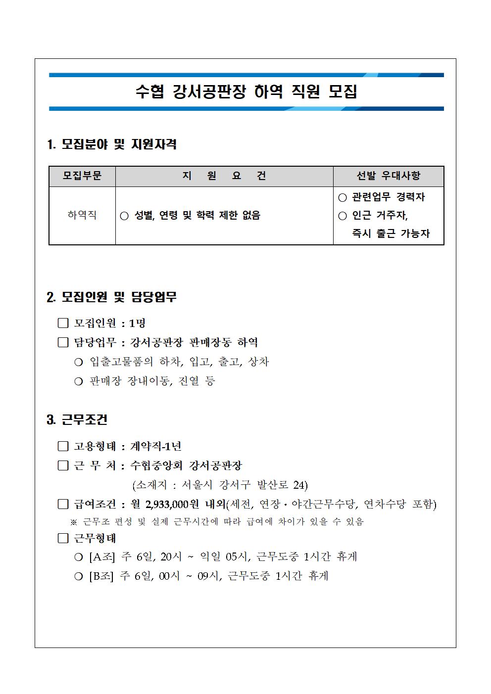 [HR사업본부-BS사업팀]수협노량진수산 사무보조원 모집(파견직)