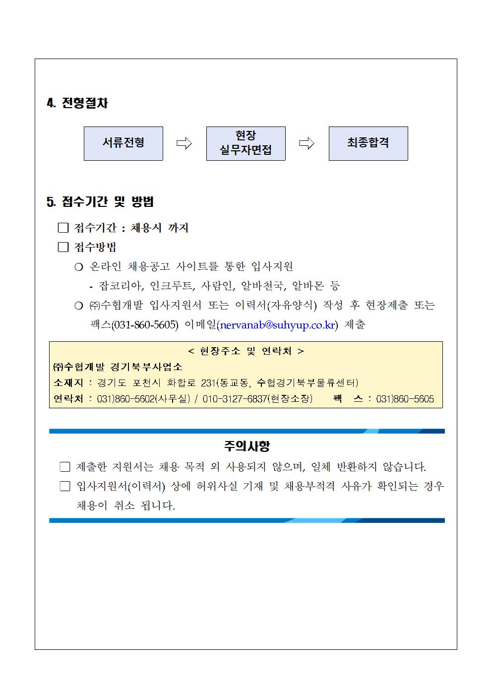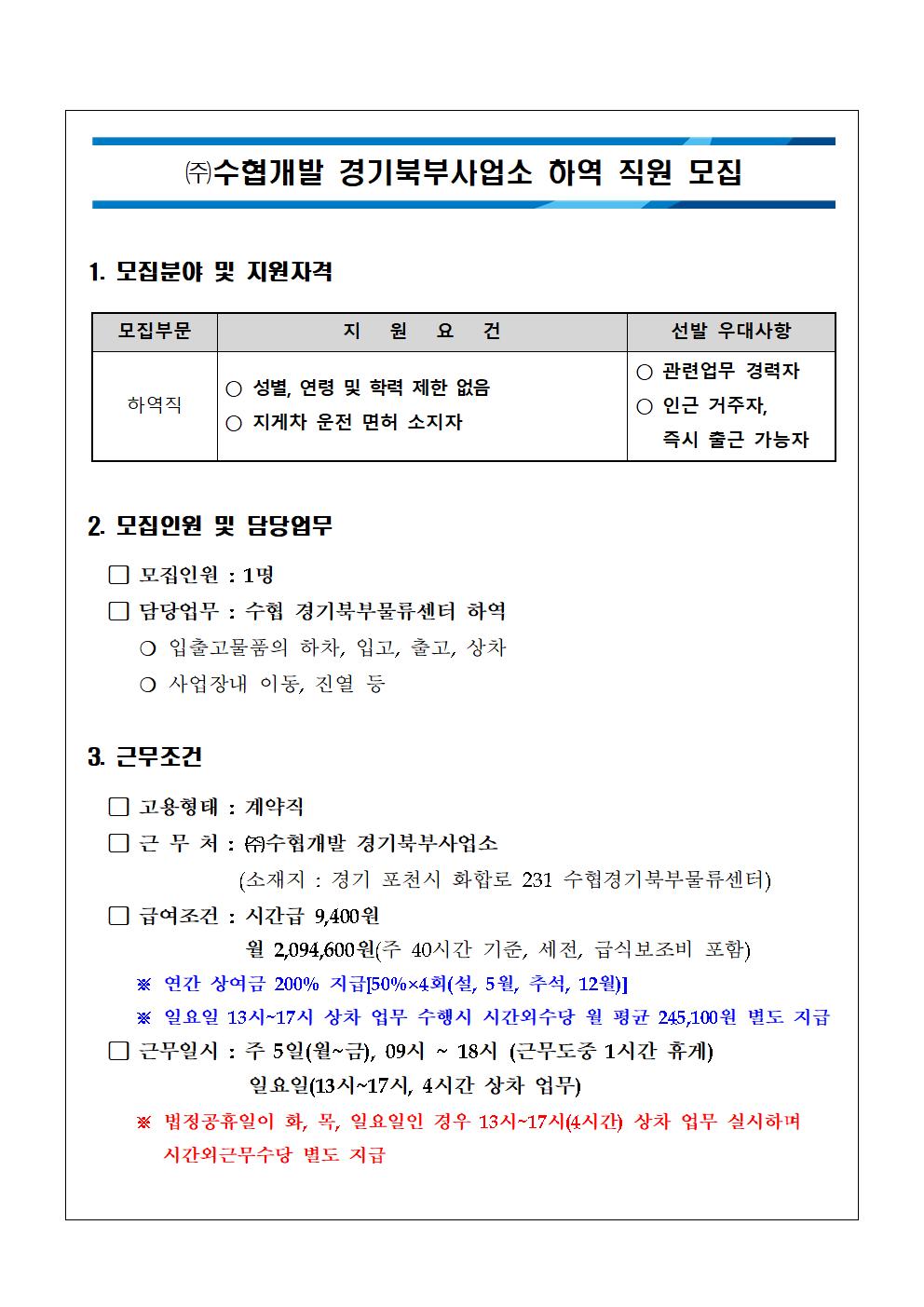 (주)수협개발 경기북부사업소 하역 직원 모집