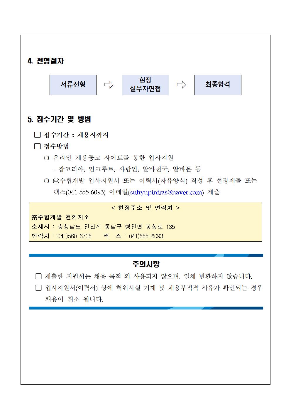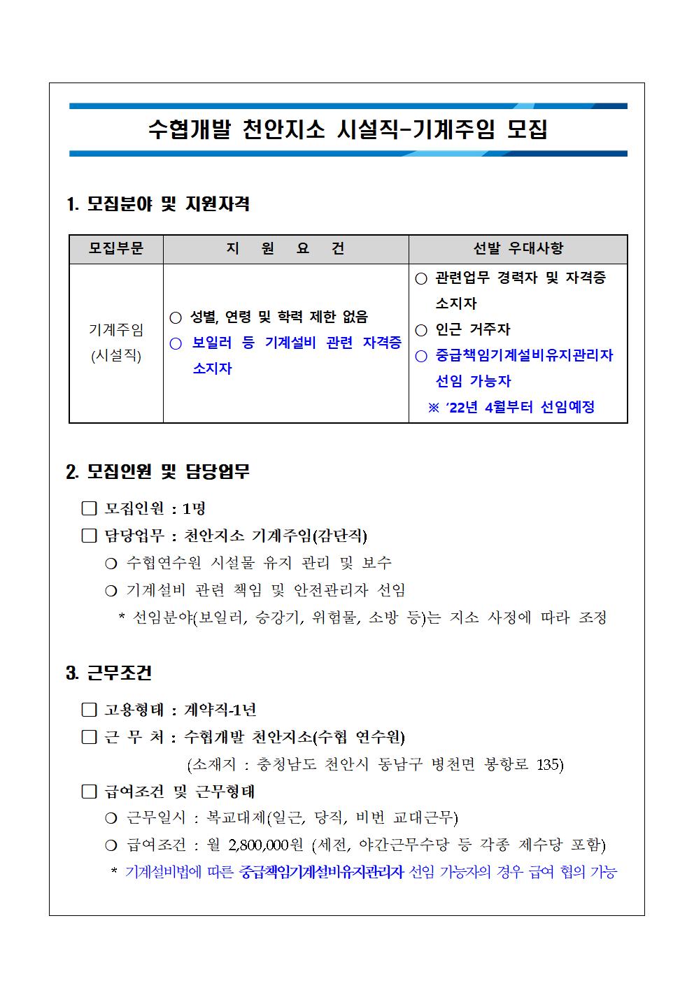 수협개발 천안지소 시설직-기계주임 모집
