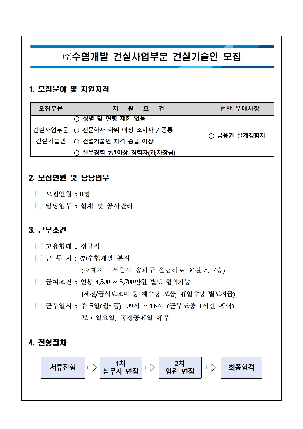 (주)수협개발 본사 건설기술인 채용